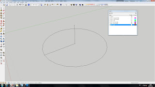 ![]() | You can now use the circle tool. When you select the central point you should see blue triangle, this means that it is on the Red/Green plane which is what we want, so click to set the centre point. | |
